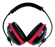 Fully adjustable. Comfortable. NRR 32DB. Black cup and red hoop with soft foam-filled cushion for all-day comfort.