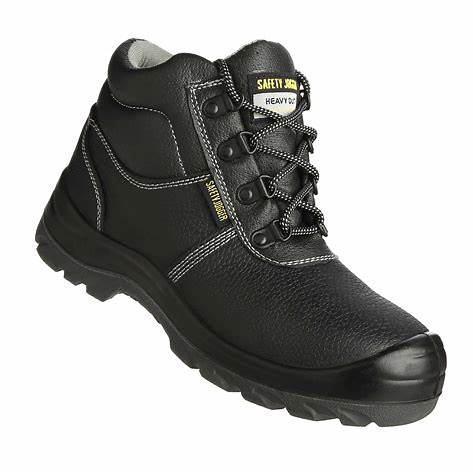 Barton action leather (water-resistant). Steel toecap. Steel plate for puncture resistance. Dual-density PU (oil, fuel, and slip-resistant).