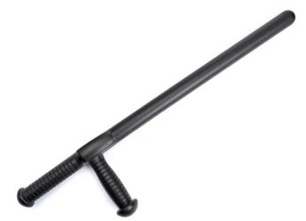 Typically carried by police officers or security guards as a baton that symbolizes authority or power for law enforcement.